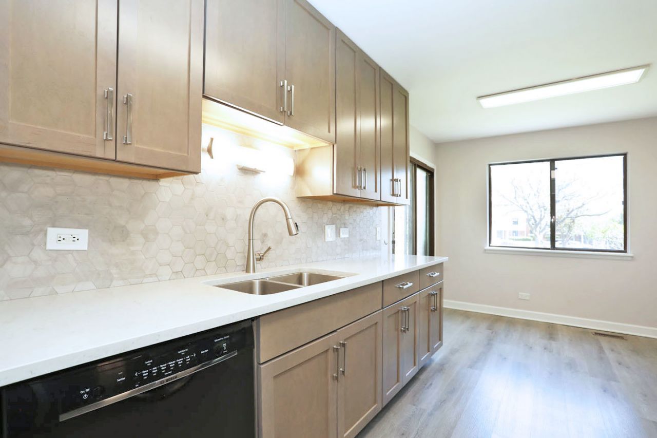 This recently remodeled 1st floor, 3 bedroom, 2 bath end unit is ready and waiting for you! Everything updated in 2022! Kitchen cabinets, quartz counters, sink & faucet, backsplash! Both Bathrooms! Light fixtures! Doors & trim throughout! Luxury Vinyl Flooring throughout! Quiet cul-de-sac location, just steps to the pool & clubhouse! Great schools! Convenient to the Library, Lou Malnati's, Woodfield, Metra, 90, & 53! Make this beautiful home yours today!