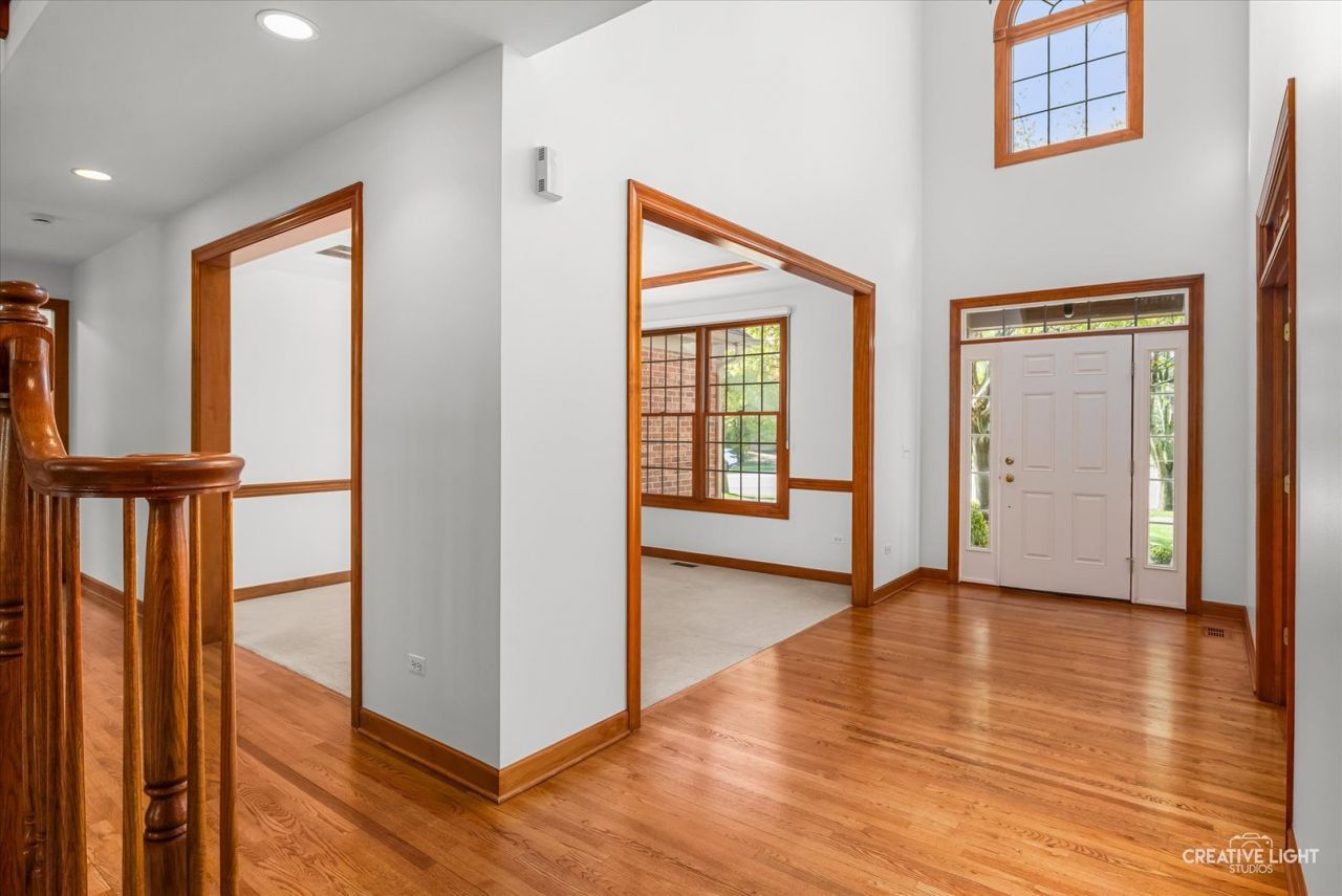 Immaculate custom home in North Plainfield, tucked away on a quiet cul-de-sac with a finished basement and a big fenced yard. Custom-built by Giacopelli, this beautifully designed home offers an open floor plan, custom millwork, and thoughtful details throughout. A grand two-story entry welcomes you inside, with an office and dining room adding both charm and flexibility. The spacious family room features a fireplace and opens to the gourmet kitchen, which has a large island, pantry, and ample space to gather. A first-floor bedroom with an adjacent full bath is perfect for guests, a related living space, or additional needs. Main-floor laundry includes a sink and cabinets for added convenience. Upstairs, the oversized primary suite offers a walk-in closet with custom built-ins and a luxury bath with dual vanities, a jetted tub, and a separate shower. A full bath and three additional generously sized bedrooms, each with its own walk-in closet, round out the 2nd floor. The finished basement expands your living space with an additional bedroom, a full bath, a bar area, a rec space, and abundant storage. Outside, enjoy the oversized 3-car garage, brick front, Hardie board siding, and a spacious, fenced, professionally landscaped yard with a patio. Dual-zoned heating and cooling add comfort and efficiency. All of this in a prime location just minutes to Downtown Plainfield, dining, shopping, YMCA, PACE bus station, and I-55. House feeds into the sought-after Plainfield North High School. Updates include: interior paint, closet organizer in primary walk-in closet (2026), landscaping (2024), furnaces, A/C units, and humidifiers (2020), and roof (2018).