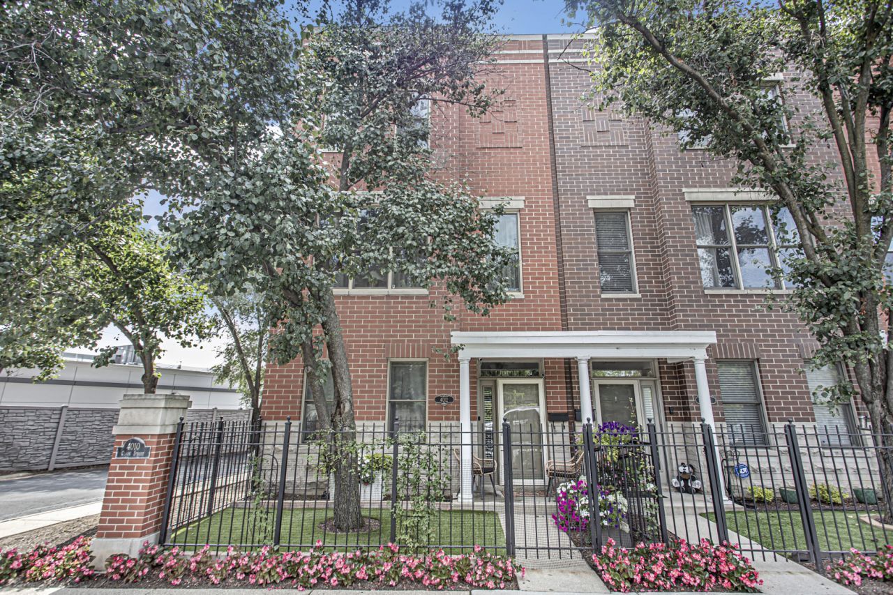 Sunny updated brick townhome with large open rooms and tall ceilings create a wonderful place to call home! The corner location allows for more windows with East, South and West exposure. This home has a large outdoor deck with sliding glass door just off the kitchen for convenient access. The updated kitchen has Quartz counters, GE Cafe appliances, full height backsplash and a custom buffet cabinet with wine storage and glass fronts. The living room has refinished hardwood floors, crown molding and a gas fireplace with mantel. The spacious primary bedroom has a walk-in closet, updated double vanity with quartz counter and Kohler fixtures. Both secondary bedrooms have in-suite baths. Pella windows, newer furnace, air conditioner, water heater and roof make this home move in ready and worry free. The front yard is gated with a covered patio and turf grass. The large 2-car garage is attached and is large enough for extra storage. This townhome community features a one of a kind beautiful courtyard to enjoy with friends and neighbors. Short walk to Blaine school, Southport retail and the Brown or Red line train.