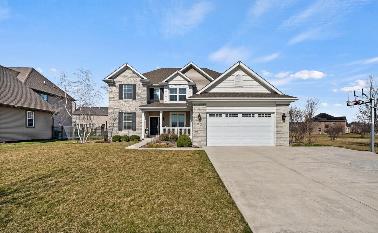 Custom built 4 bedroom, 4 bath home home with finished basement and 3 car tandem garage situated on a beautifully landscaped lot next to green space. This home has been impeccably cared for and boasts of its many upgrades. Large eat-in kitchen with staggered soft close cabinetry, island, granite counter tops and stainless steel appliances open to great room with built in entertainment center, first floor office, formal dining room, spacious primary suite with luxury bath and walk-in closet, additional bedrooms are all generously sized with walk-in closets, loft, 2nd floor laundry, finished basement with huge game room, built in entertainment center, gym, flex room which is currently set up as a 5th bedroom. Enjoy outdoor living from the custom paver patio, built in gas grill and fire pit. Professionally landscaped yard with sprinkler system, concrete driveway with additional apron. Must see this outstanding home!