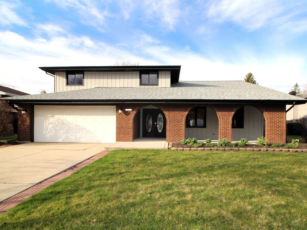 This beautiful tri-level home in Country West Subdivision won't last long! The 4 bedrooms, 2.5 bathroom home has a lot to offer with many updates throughout. The first thing you'll notice is an oversized front porch and double entry door with a keypad feature. The foyer has a hallway closet and updated powder room. The 2-story home with vaulted ceilings gives you the open concept feeling. The spacious dining area and the living room with brand new carpet is great for entertaining and family gatherings. Large eat-in kitchen with ample cabinet and counter space, underneath cabinet lighting, stainless steel appliances including new refrigerator (2022), new dishwasher (2023). Sit back and enjoy the wall to wall stone gas fireplace in the family room with brand new wireless can lighting. The oversized patio doors overlook the beautiful yard. Main level has a separate laundry room with cabinets and utility sink. New light fixtures throughout the home and whole house attic fan. The upper level features a full bathroom with tub/shower combo, four bedrooms including a master suite with a private bathroom and walk-in closet. Wood laminate flooring and ceiling fans in all bedrooms. The entire interior has been freshly painted including ceilings (2024). Partially finished basement including crawl space for your storage needs. The completely fenced back yard is a peaceful place to relax and unwind. In addition to the shed there is a custom expanded paver patio with a fire pit. The yard is large and ready to start your gardening. New roof (2023), new siding (2023), new gutters and downspouts (2023), fresh exterior paint (2023), and 2-car garage. This home is conveniently located close to dining, shopping, schools, expressways and more. Come and see all the potential this home and the area has to offer!